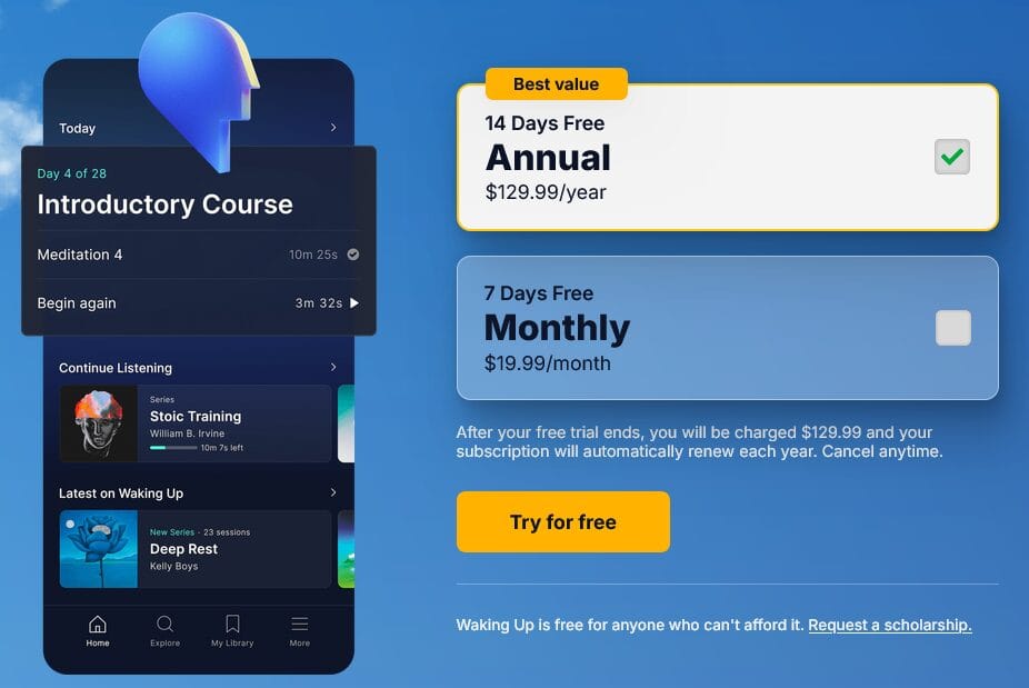 Created by Sam Harris, Waking Up offers in-depth courses on mindfulness, meditation, and philosophy. This app is perfect for individuals looking for a deeper, more intellectual approach to meditation.